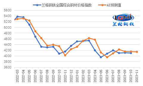 圖5 蘭格|騰景鋼鐵綜合價(jià)格指數AI預測(元/噸)