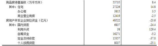 1—4月份,房地產(chǎn)開(kāi)發(fā)企業(yè)到位資金48522億元,同比下降23.6%。其中,國內貸款6837億元,下降24.4%;利用外資38億元,增長(cháng)129.4%;自籌資金16271億元,下降5.2%;定金及預收款15357億元,下降37.0%;個(gè)人按揭貸款8037億元,下降25.1%。