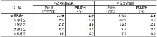 1—4月份,商品房銷(xiāo)售面積39768萬(wàn)平方米,同比下降20.9%;其中,住宅銷(xiāo)售面積下降25.4%。商品房銷(xiāo)售額37789億元,下降29.5%;其中,住宅銷(xiāo)售額下降32.2%。
