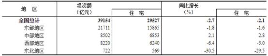 1—4月份,全國房地產(chǎn)開(kāi)發(fā)投資39154億元,同比下降2.7%;其中,住宅投資29527億元,下降2.1%。