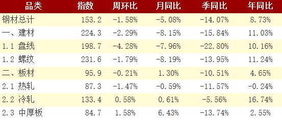 2. 盤(pán)線(xiàn)庫存下降速度有所加快,螺紋鋼庫存下降速度有所放緩;熱軋卷板庫存由升轉降,冷軋庫存由降轉升,中厚板庫存上升速度略有放緩