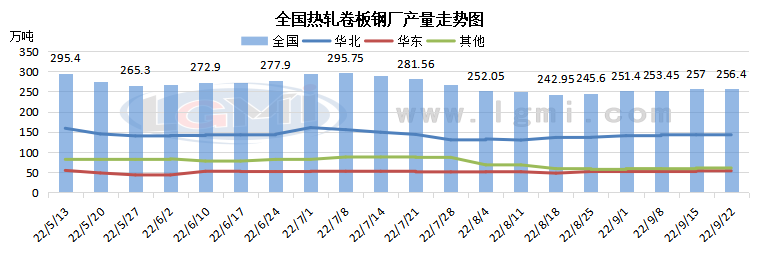 熱卷產(chǎn)量環(huán)比抬升。截止到9月22日,國內35家熱劇企業(yè)產(chǎn)量為265.3萬(wàn)噸,較8月底增加10.8萬(wàn)噸。受熱卷需求以及鋼廠(chǎng)利潤壓力等方面影響,鋼廠(chǎng)鐵水產(chǎn)量多向其他品種材傾斜,本月熱卷產(chǎn)量回升幅度表現受限。