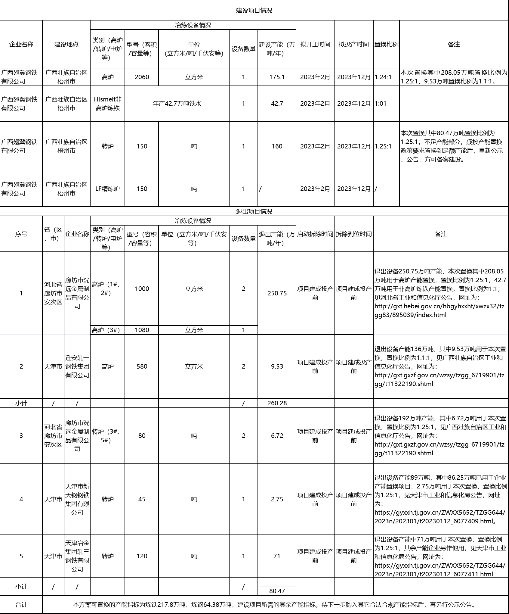 廣西翅冀鋼鐵鋼鐵產(chǎn)業(yè)升級項目產(chǎn)能置換方案公告